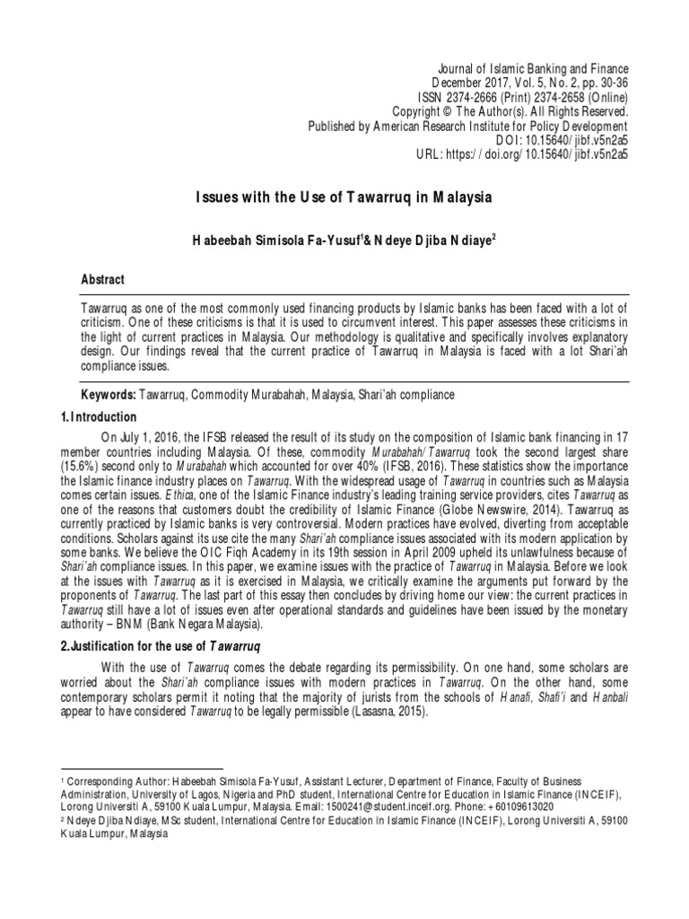 Muhammad haseeb, faculty of business and professional studies (fbmp), management and science university (msu), shah alam, selangor malaysia. Significant waqf contribution in islamic world 2817 The relative soundness of the islamic financial framework outlined amid the current worldwide financial crisis. In malaysian capital markets, the securities commission has referred this as. Specifically, the study attempts to examine the awareness of the current criticisms of the main shari'ah issues in islamic finance, and the perception of the selected customers towards these criticisms.